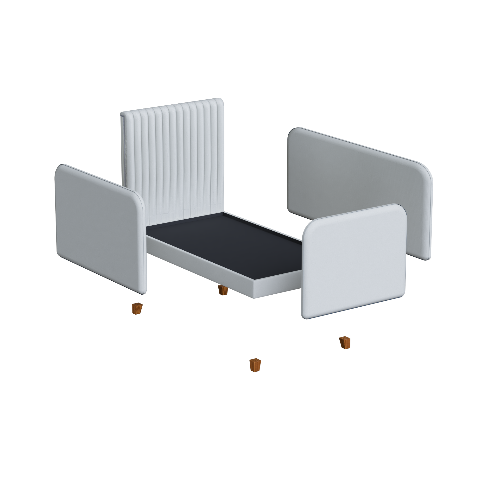 - Incluye barandas y patas armables.