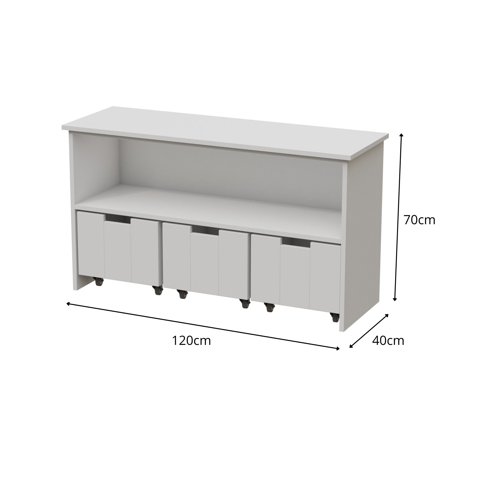 2. Medidas: Ancho: 120cm, Alto: 70cm, Fondo: 40cm.